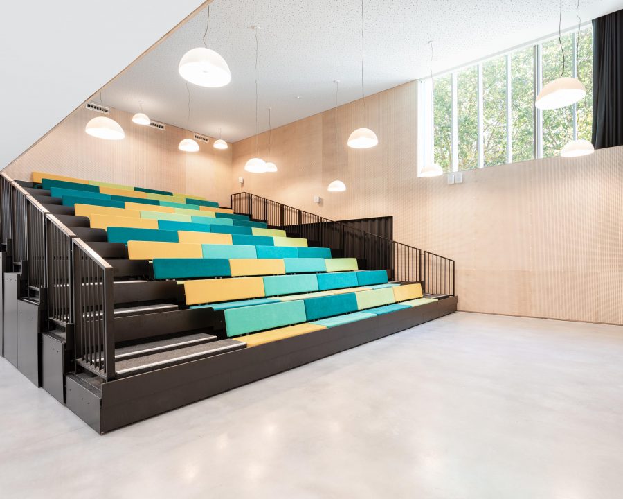 Missions : conception agencements intégrés, matériaux, couleurs, signalétique, assistance au choix du mobilier meublant, accompagnement du 1% artistique, Vefa Lucas & Morgan Seban